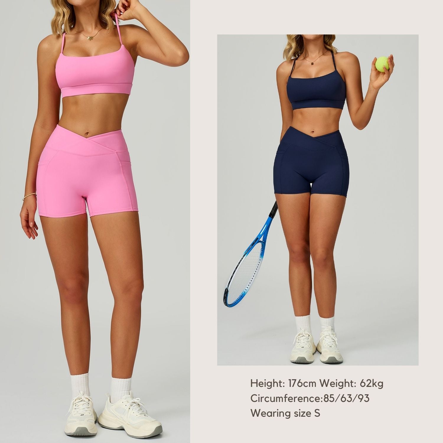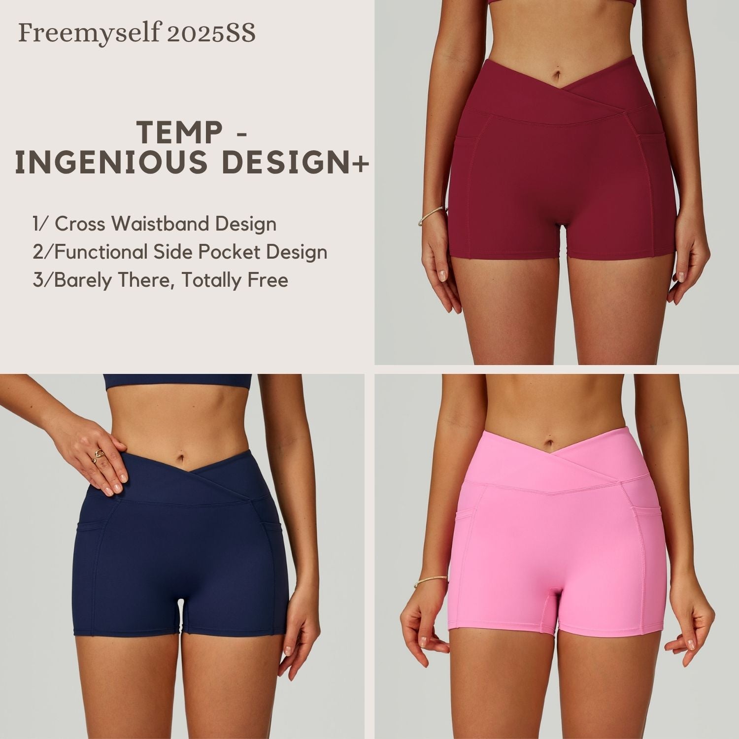 Freemyself 25ss high-waist shorts feature a cross waistband for secure fit, side pockets for convenient storage, and a butt-lifting seam that enhances curves while shaping the waist perfectly.