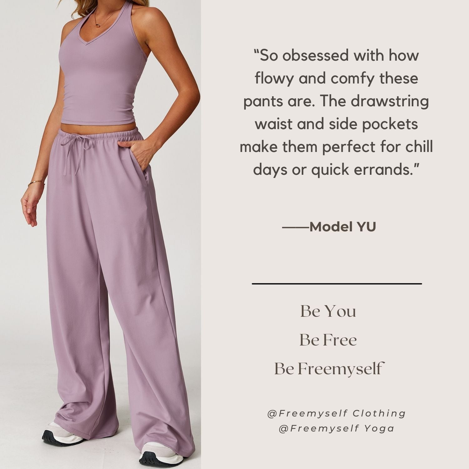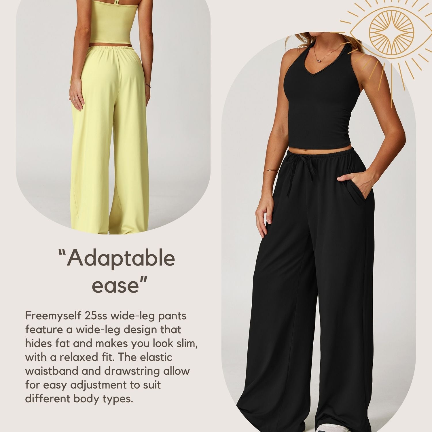 Freemyself 25ss wide-leg pants feature a wide-leg design that hides fat and makes you look slim, with a relaxed fit. The elastic waistband and drawstring allow for easy adjustment to suit different body types.