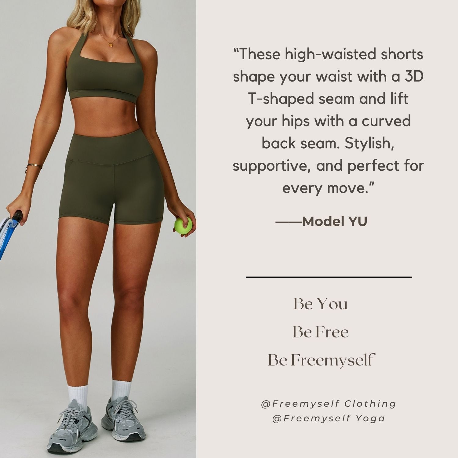 Freemyself 25ss High-Waisted Shorts feature a 3D T-shaped front seam and curved back contour seam designed to shape your waist and lift your hips for a flattering fit.