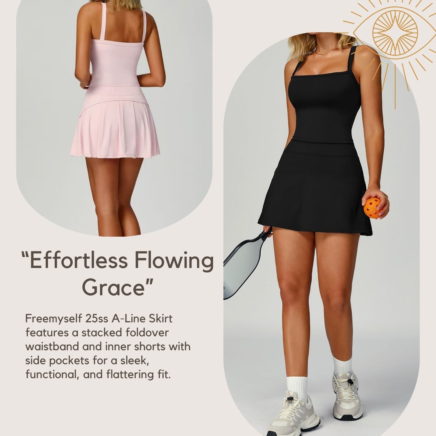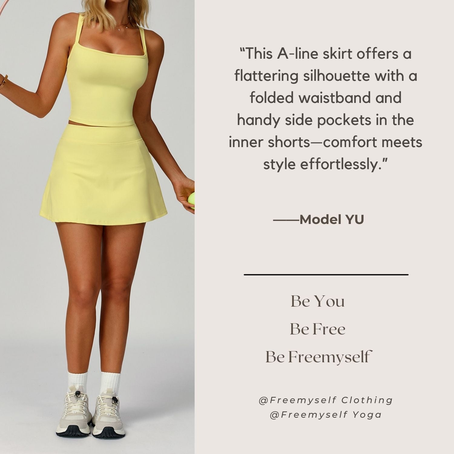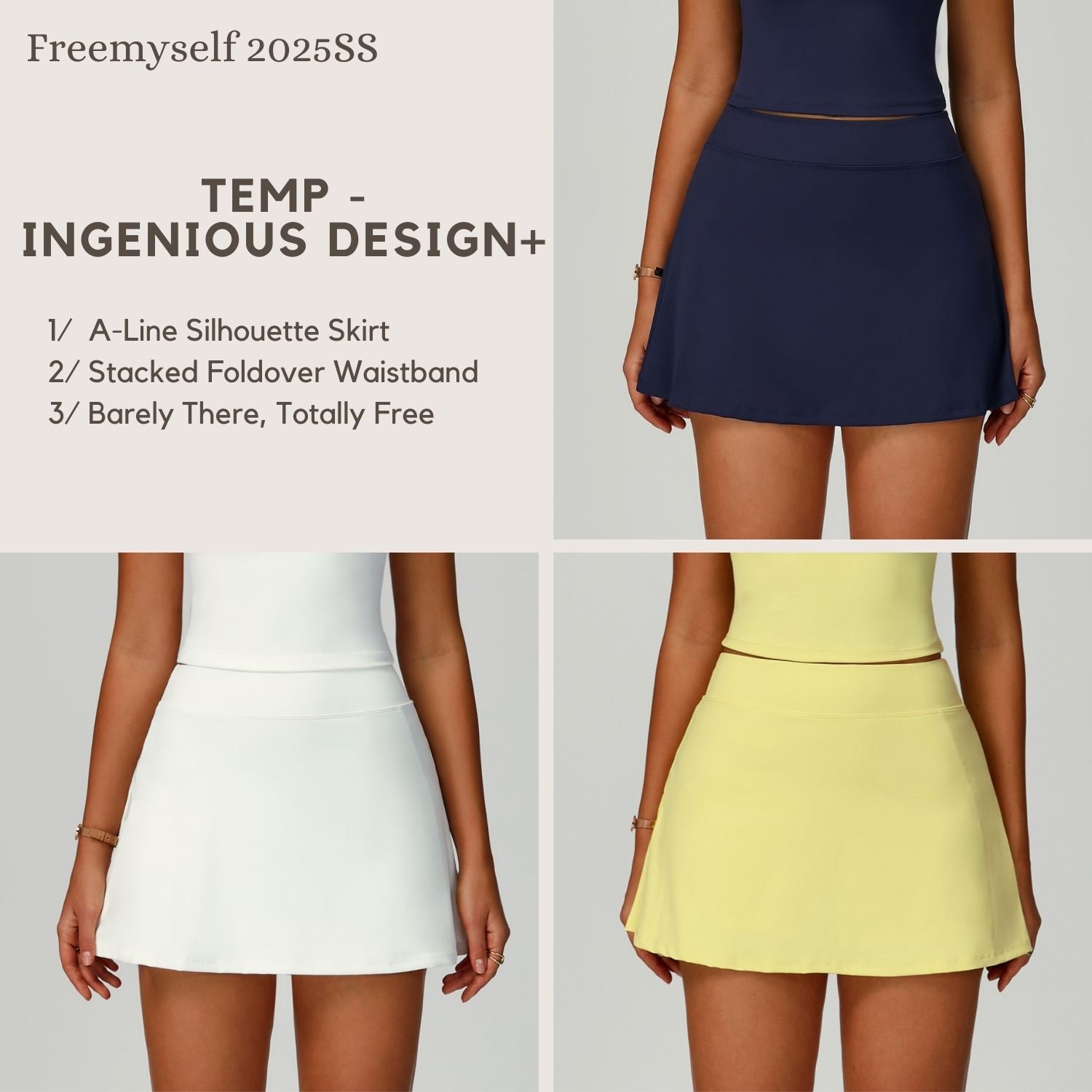 Freemyself 25ss A-Line Skirt features a stacked foldover waistband and inner shorts with side pockets for a sleek, functional, and flattering fit.