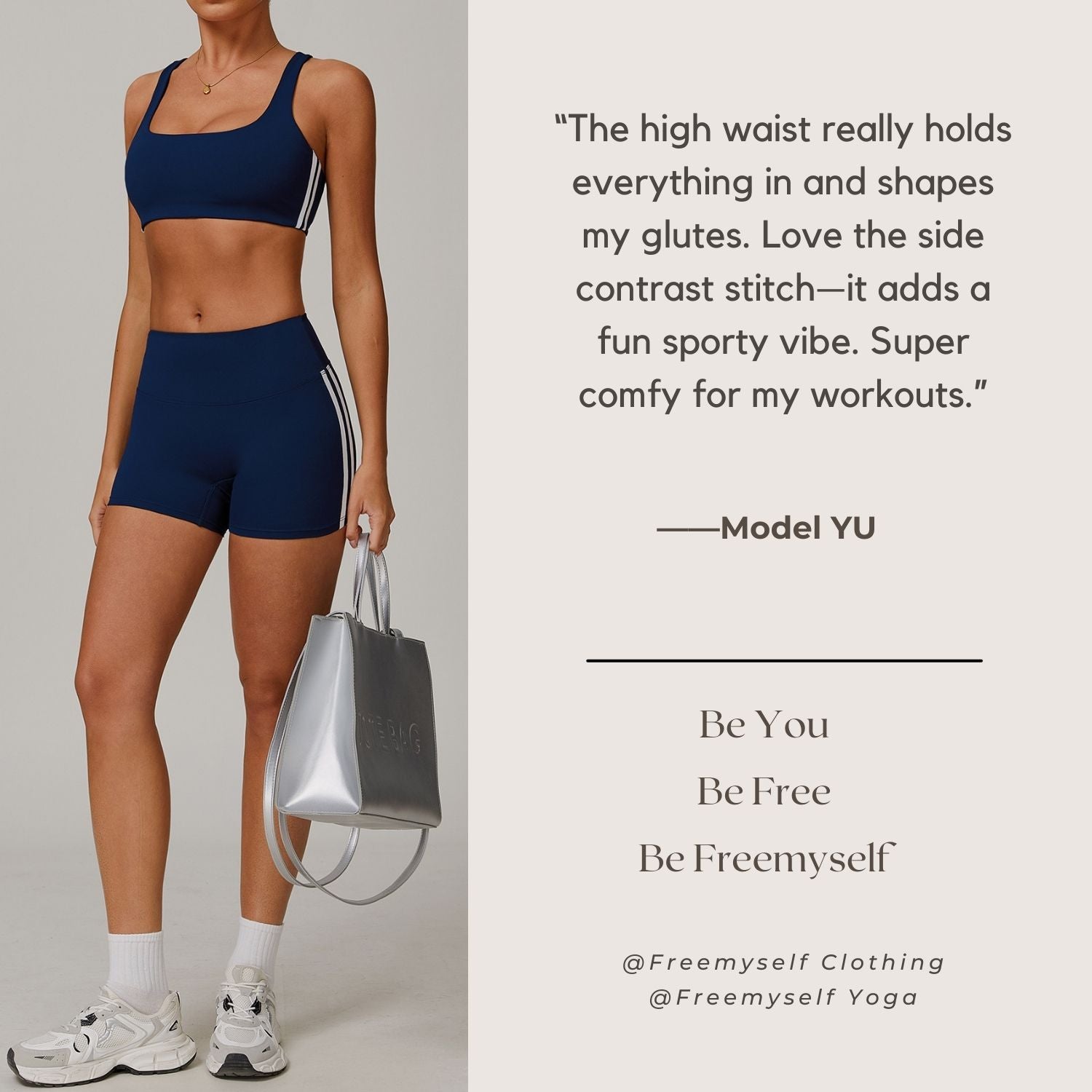 Freemyself 25ss high-waist shorts lift and shape your glutes while providing a snug, comfortable fit. Side contrast stitching adds sporty style and visual interest, perfect for yoga or any active wear session.
