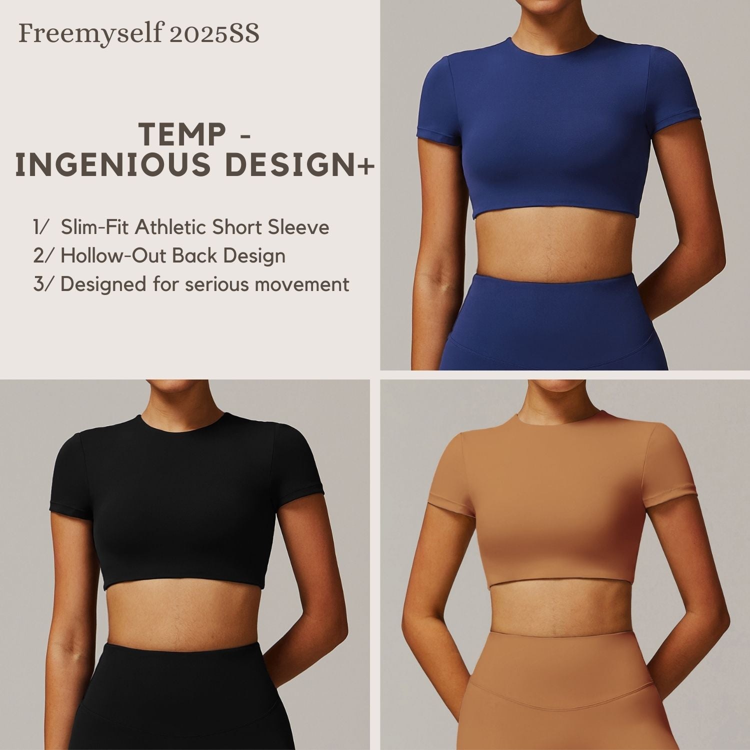 Freemyself 25ss Slim-Fit Tee combines a sleek athletic cut with a breathable hollow-out back design. Detachable chest pads offer customizable support, making it perfect for workouts or casual wear.