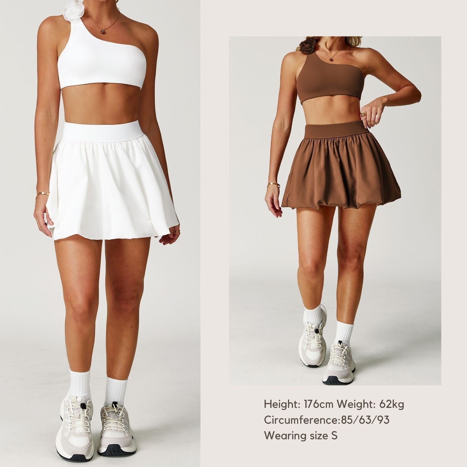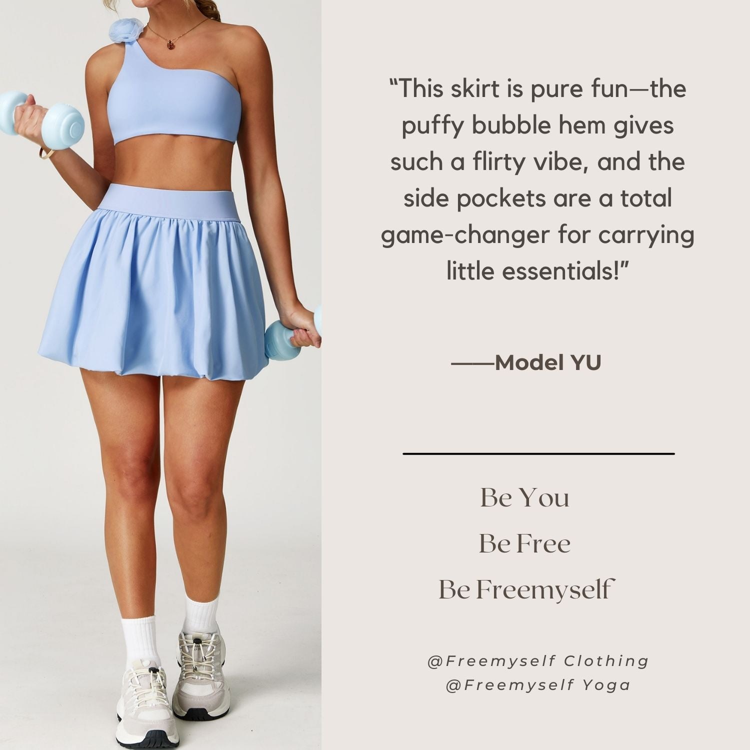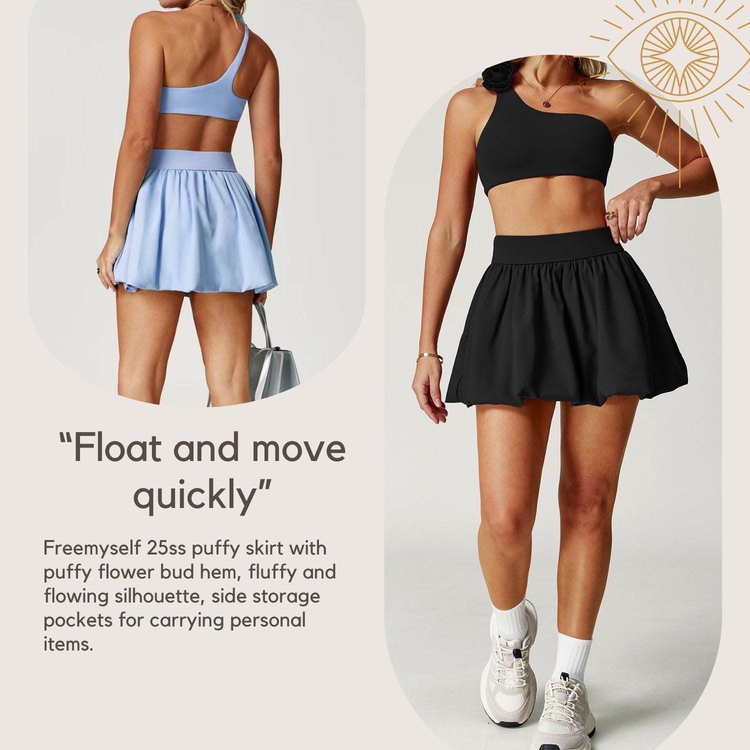 Freemyself 25ss puffy skirt with puffy flower bud hem, fluffy and flowing silhouette, side storage pockets for carrying personal items.