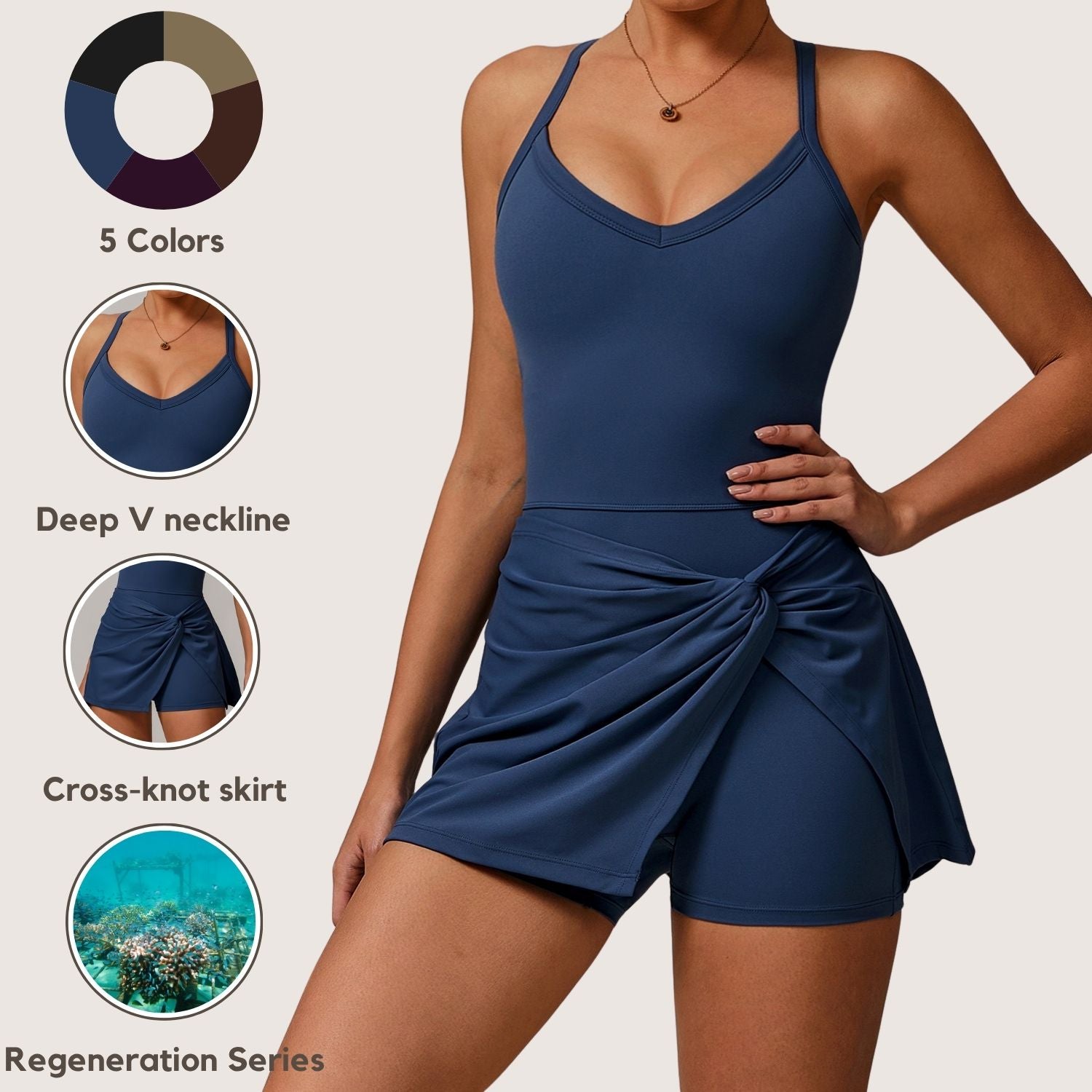 Freemyself 25ss Cutout Dress is designed with a deep V-neckline that accentuates the collarbone line, and a crossover knot design at the hem adds detail.