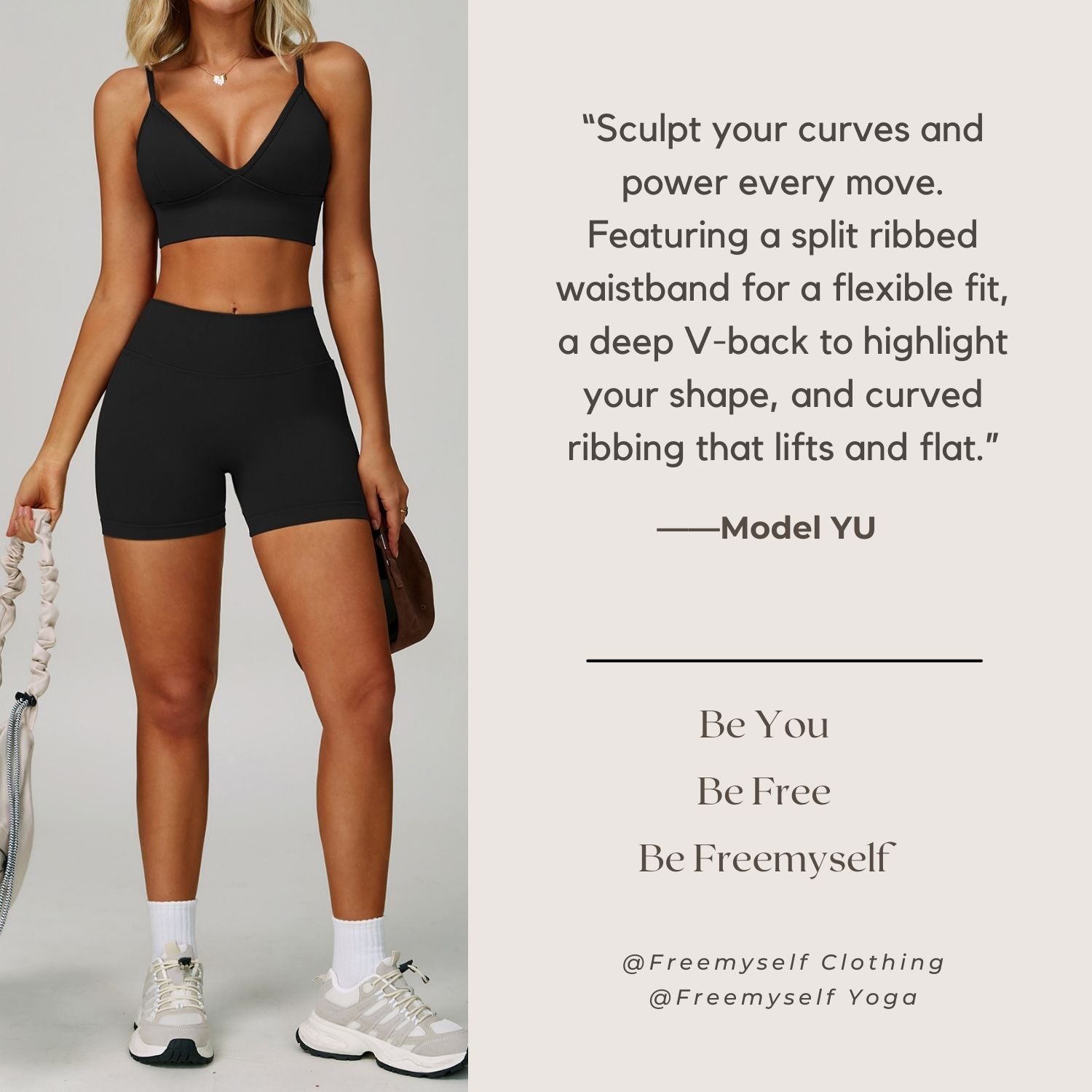 Freemyself 25ss V-Cut Ribbed Shorts feature a split ribbed waistband for a flexible fit, a deep V-cut back to accentuate the waistline, and curved ribbed detailing that enhances the natural shape of the hips. Designed to sculpt, define, and move with you.