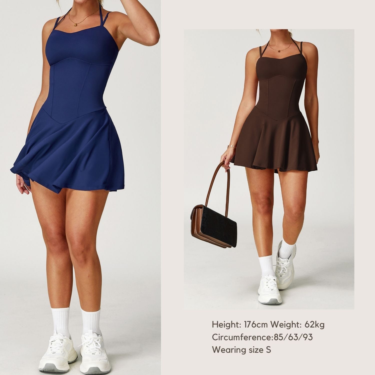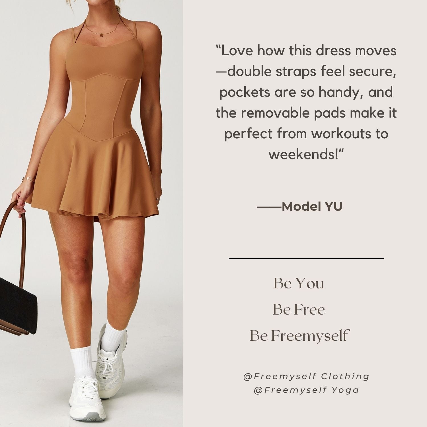 Freemyself 25ss strapless dress features a double shoulder strap design to evenly distribute pressure on the shoulders, side pockets to free up your hands, and removable chest pads for a one-piece solution for sports and going out.